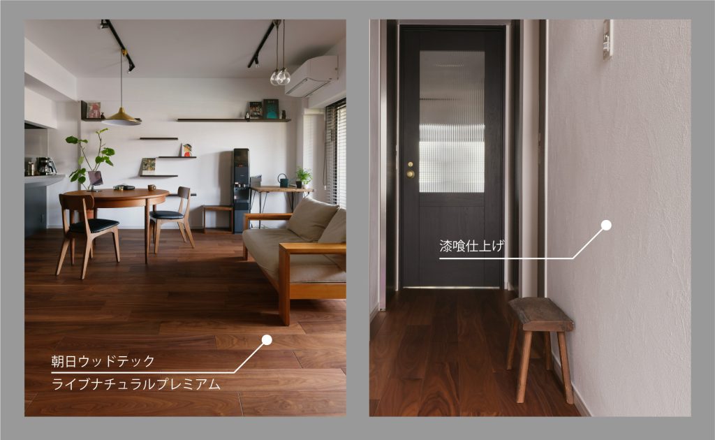 床材:朝日ウッドテック「ライブナチュラルプレミアム ブラックウォールナット」