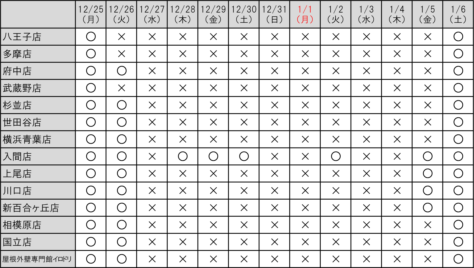 2023~2024年の年末年始営業につきまして、下記の通りお知らせいたします。