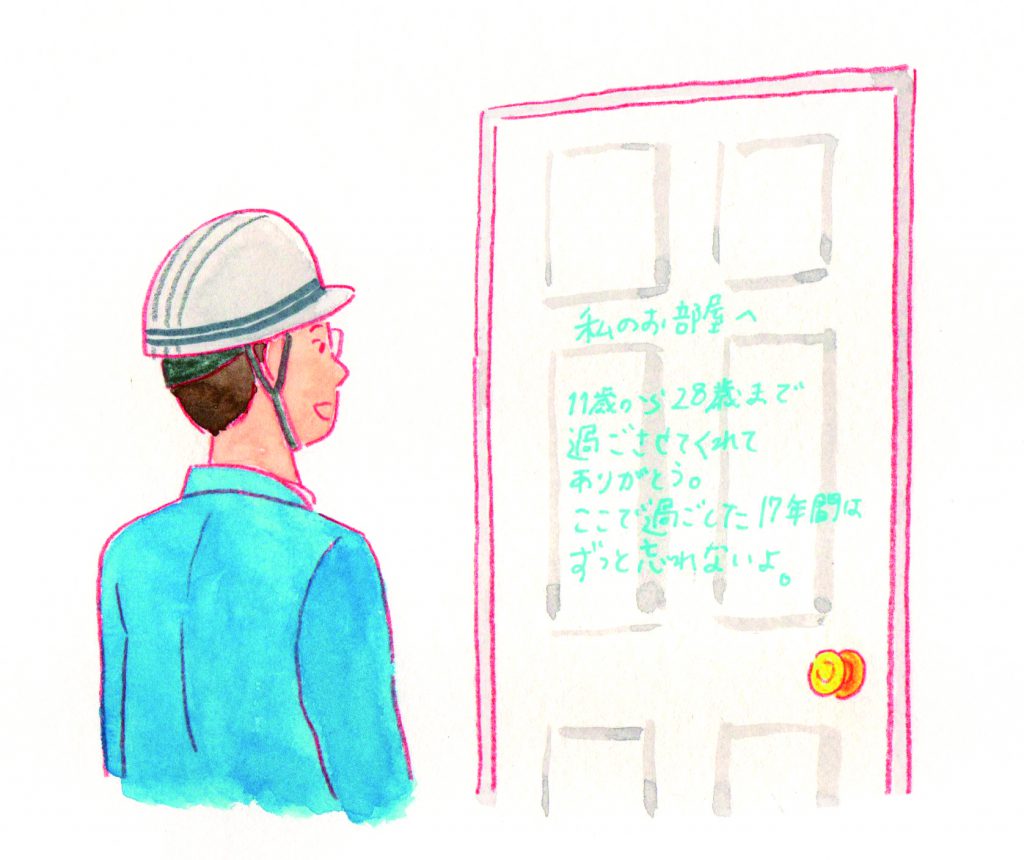 「私のお部屋へ。11歳から28歳まで過ごさせてくれてありがとう」