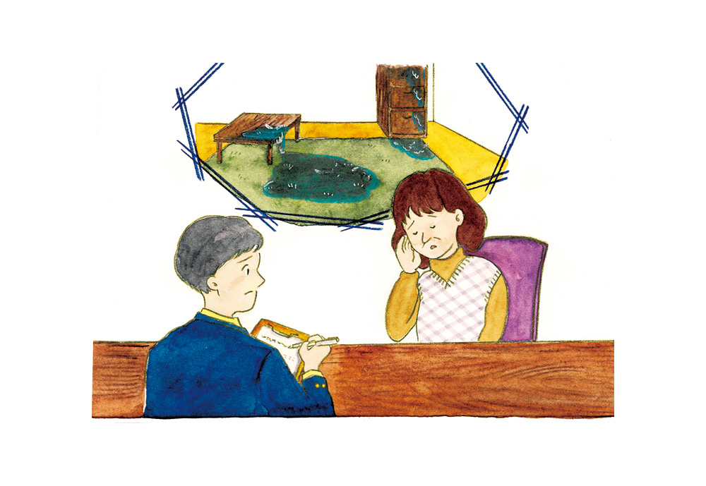 うなだれるようにして相談に来られたある女性のお客さま。その表情はとても暗く、私はひと目で落ち込んでいることに気が付いた。詳しく聞いてみると、マンションの上階から水漏れがあり、お客さまの部屋が水浸しになってしまったそう。