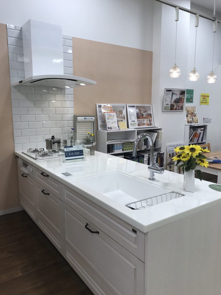 ガラストップガスコンロW750両面連動 クリアグレージュ、富士工業レンジフード、浄水機能付シャワー