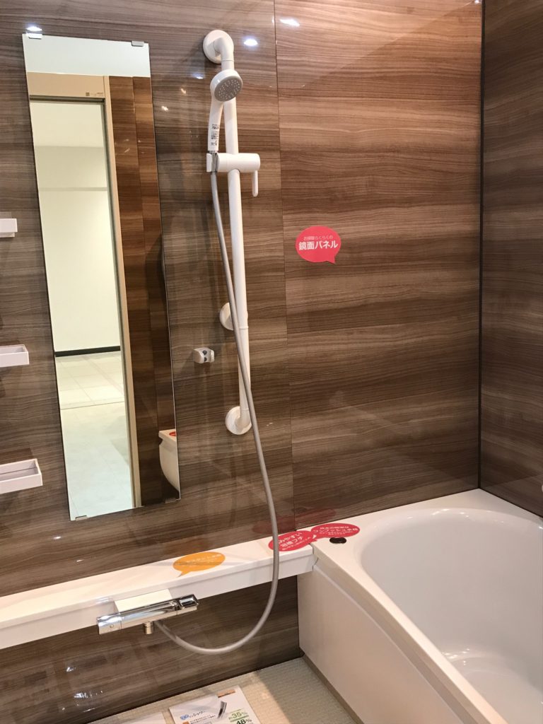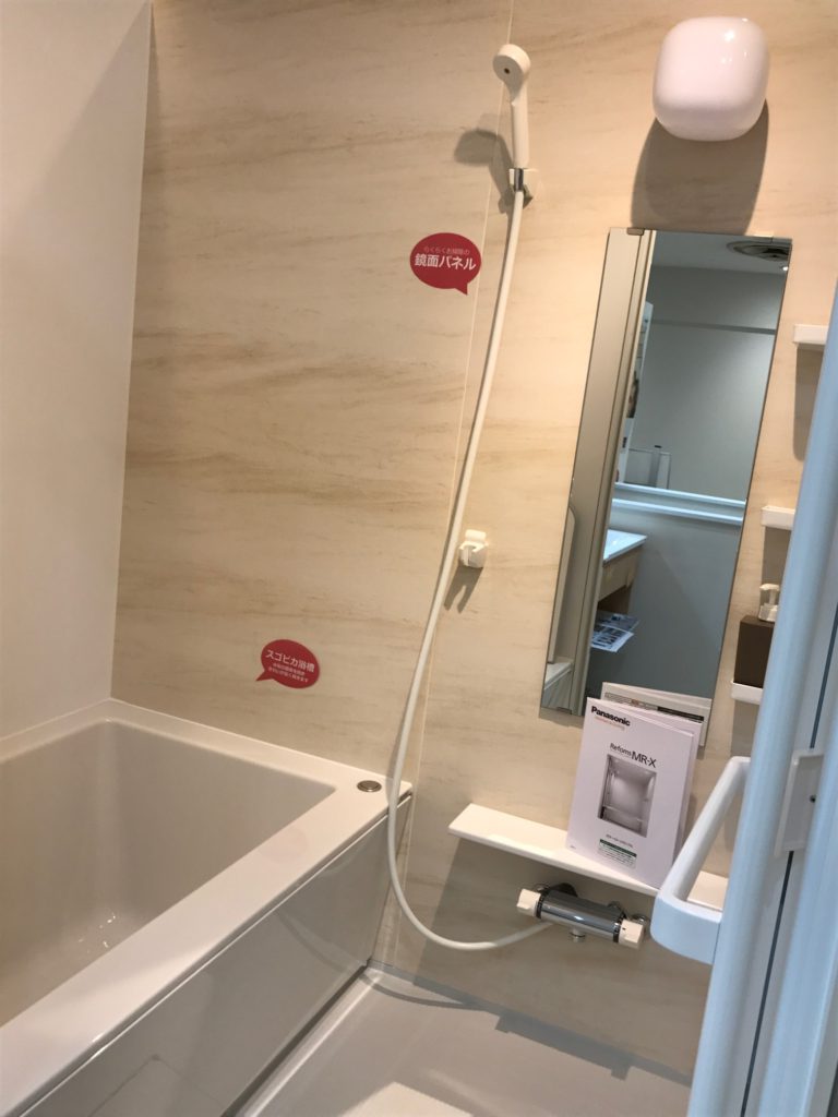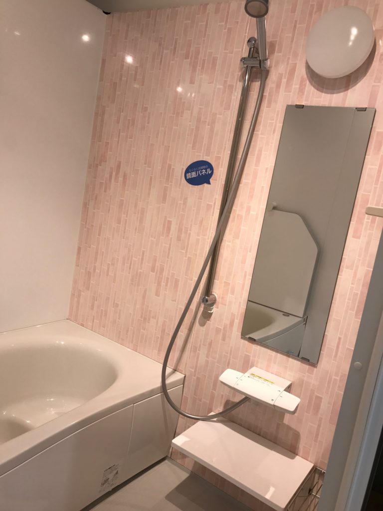 戸建、1616(1坪)、スミピカフロア(ミディアムホワイト単色)、ACガラスタイルピンク+パラレルホワイト、スゴピカ保温浴槽2、換気扇(100V)