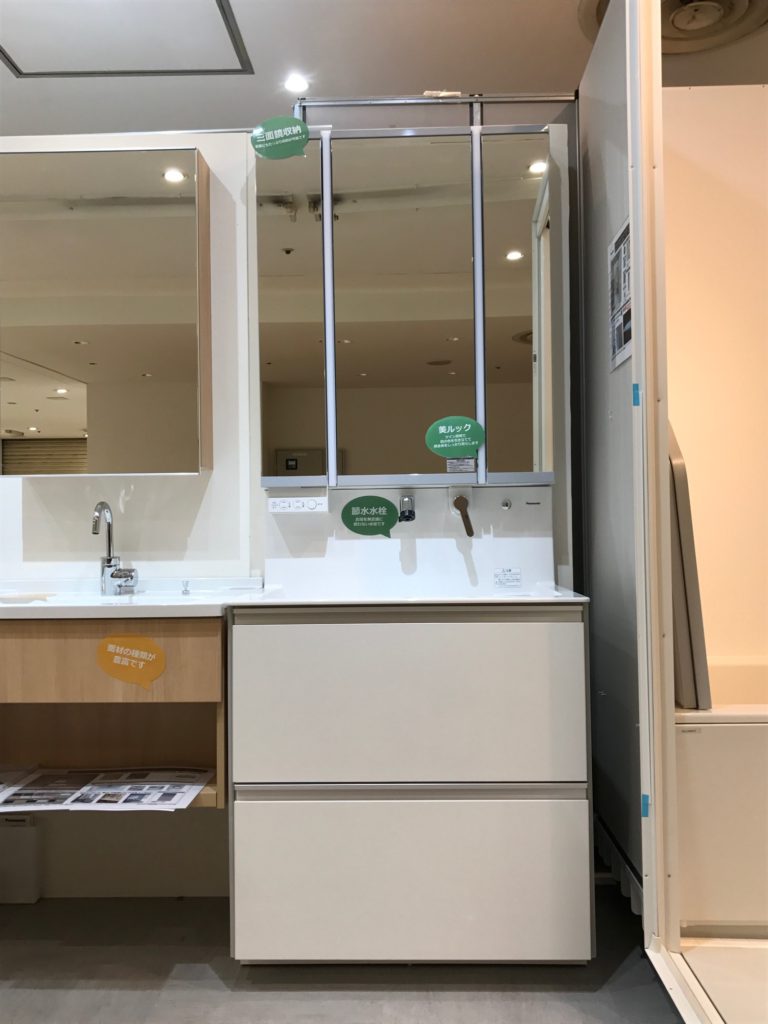 システム洗面台、W750×D550×Hカウンター800、タイプB、ビューティホワイト、有機ガラス系新素材・パノラマスライドタイプ