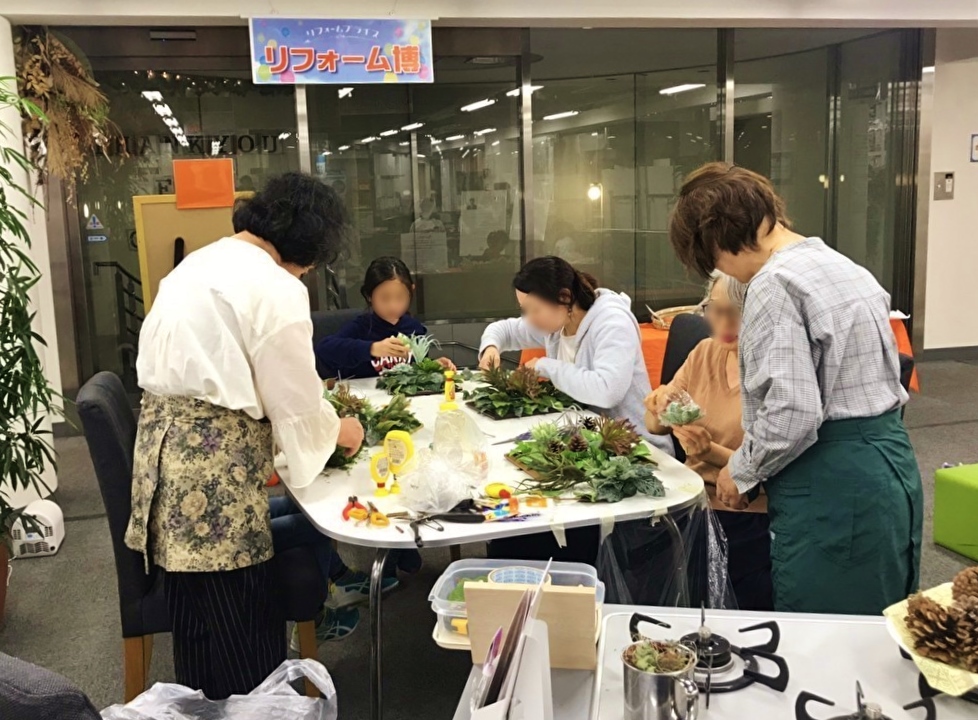 リフォーム博3日目には、講師の方をお招きして「ドライフラワーアレンジメント」を開催いたしました。