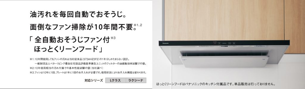 家電分野で培った知識や経験をフル活用した設備の機能性の高さも特徴的で、お掃除が大変なレンジフードがそのひとつ。