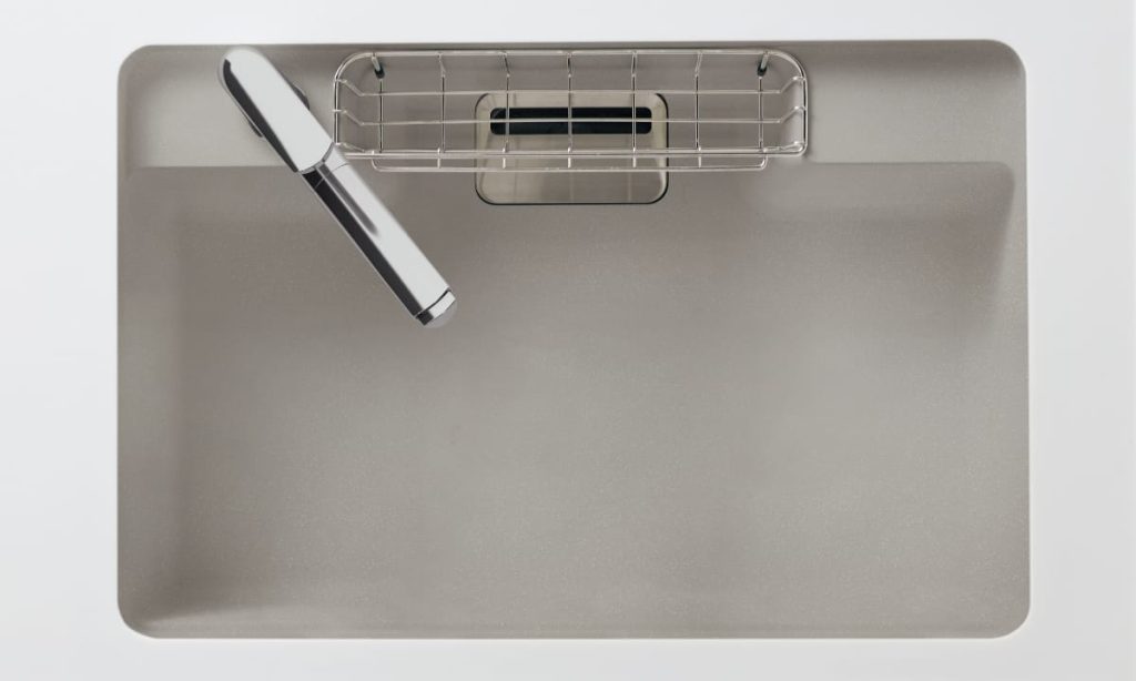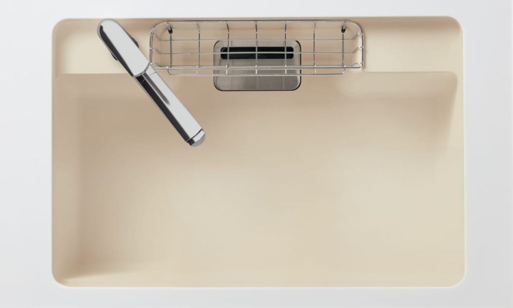 有機ガラスは沖縄の美ら海水族館の水槽のガラスと同じ原料です。かつては世界一と謳われた水槽の水圧に耐える強度を誇る有機ガラスのタフネスをキッチンのシンクに取り入れたとなると、安心感がありますね。