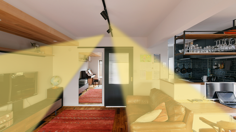 例えば、天井の高いキッチンには、吊り下げ型のペンダントライトをライティングレールに取り付けることで、ダイニングスペースとの一体感を持たせることができます。また、スポットライトを使って特定のエリアを強調したり、ディスプレイ棚や植物をライトアップしたりすることも可能です。