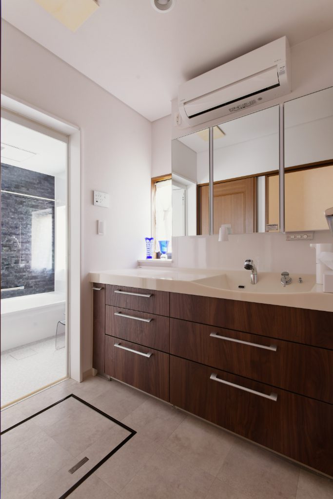 洗面室とは別に大きなパントリーがある家も、ストック品などを置く必要がないため洗面室内に大きな収納が不要な場合もあります。