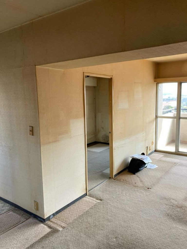 団地の構造上、コンクリートの躯体面が多く、開放的なLDKにするためには工夫が必要でした。