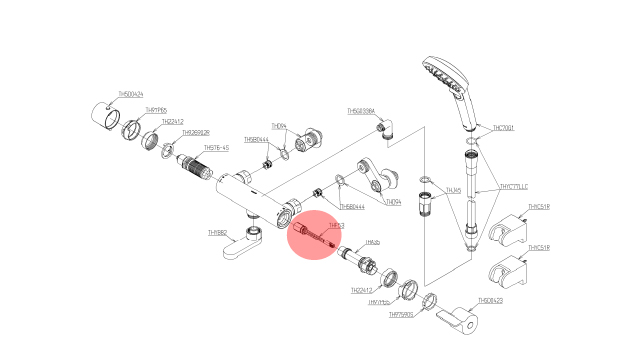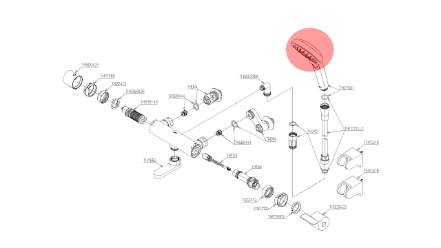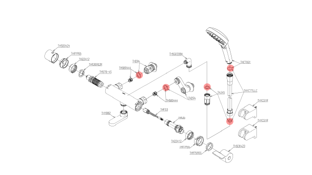 ここからはTOTOの浴室水栓を例に挙げて説明します。パーツの展開図を元に、故障の箇所と症状を覚えておきましょう。