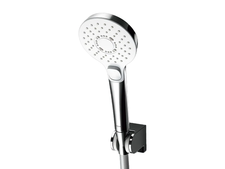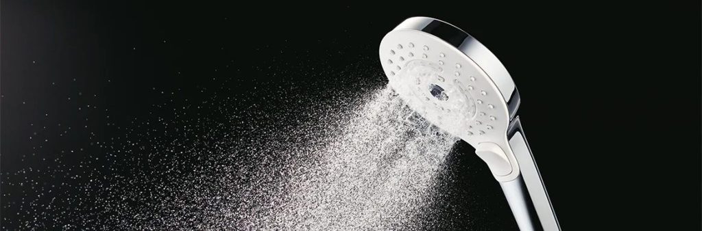 シャワーヘッドの根元のボタンで一時的に水を止めることができる「クリック」機能付きのシャワーヘッドは、水を止めたり出したりする際に一時的な温度ムラが生じますが故障ではありません。