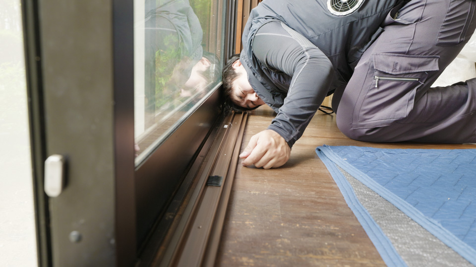 窓の状態を確認し、内窓を設置するための「樹脂製の専用枠」を取り付けます。