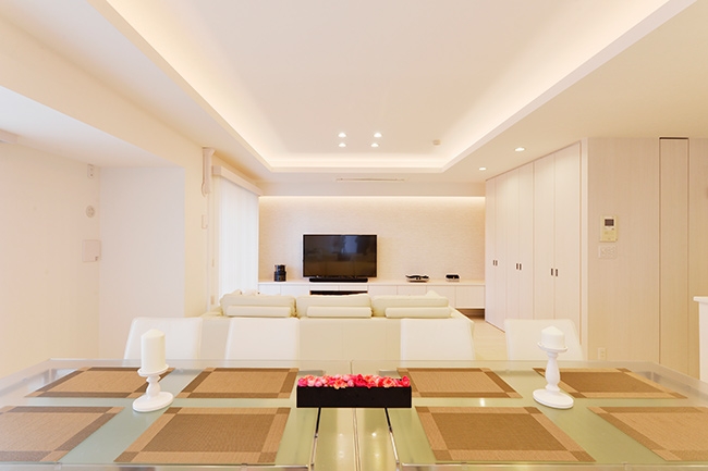 リフォーム・リノベーションではカーテンの色やソファの形も含め理想の空間を専門家に相談する事でトータルカラーコーディネートされた居心地よい空間に変えることも可能です。
