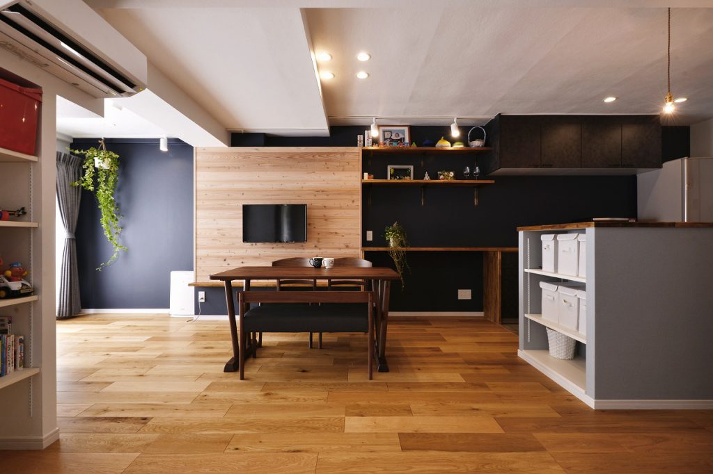 2)床材を剥がし、新しく床暖房を施工する方法ですと工期と費用はかかりますが、床材の色や質を選ぶことが出来ますので、リビング全体を新たな空間に変えることもできます。