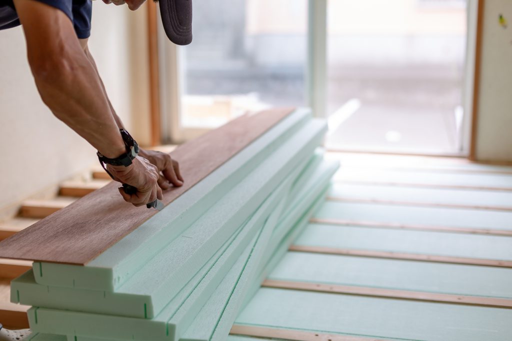 まず流れとしては、初めに畳を全て剥がして撤去します。畳の厚さによってフローリングをそのまま張れるのか、または床を組みなおす必要があるのかが変わってきます。予備知識として畳の厚さを見ておきましょう。通常畳は30mm~60mm、薄畳は15mm~29mmあるのに対して、フローリングは12mm~15mmという厚さになっています。つまり薄畳なら問題ないかもしれませんが、通常畳ではフローリングの2倍程の厚さがあるのでそのまま張ることができないというわけです。そのため、ほとんどの場合は床を組みなおして段差ができないような工程が必要になります。また戸建てにおける畳のリフォームでは、ここの工程で床下からの冷気を防ぐ為に断熱材をいれるということもあります。