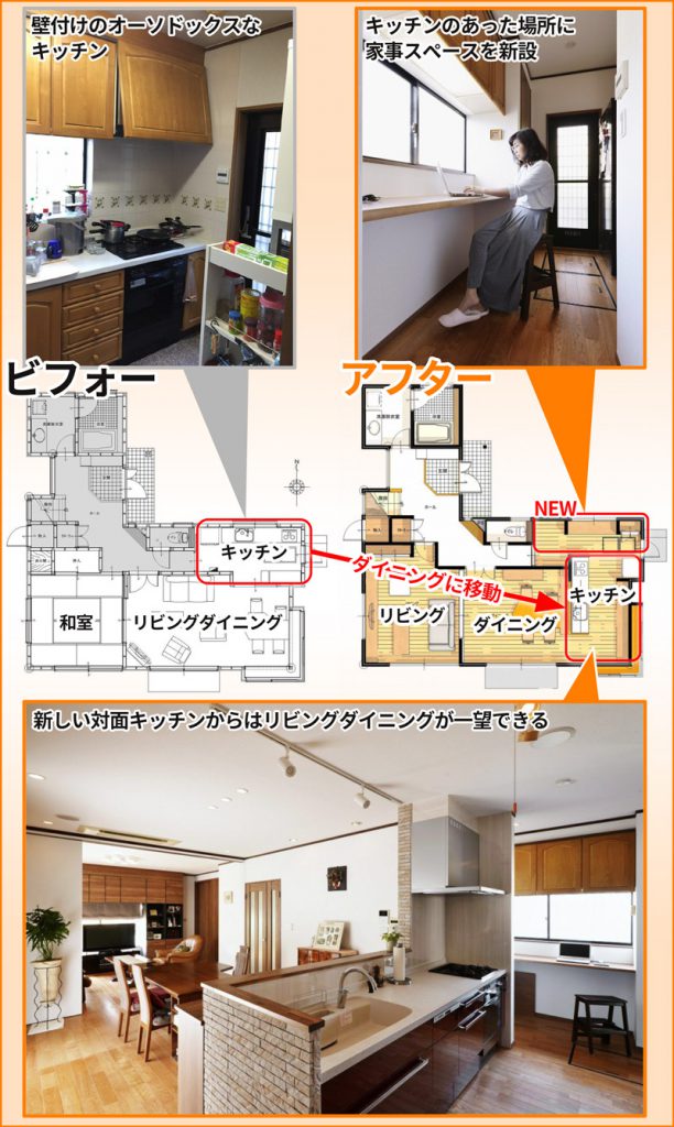 その中で今回は、キッチンを壁付けから対面キッチンに変更した事例をピックアップします。