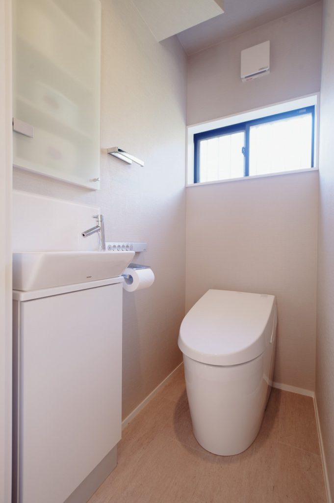 とにかく収納にこだわっていた奥様,トイレも棚をつけすっきりとした印象に。