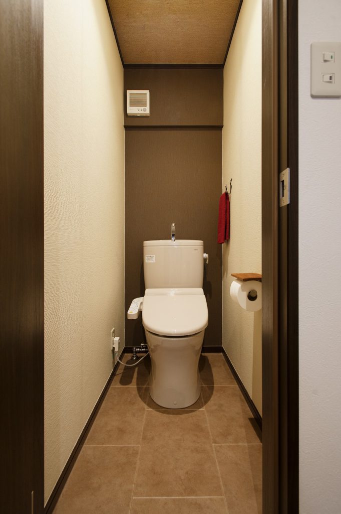 タンク背面をアクセントクロスで仕上げることによって、トイレが引き締まった空間になるように。