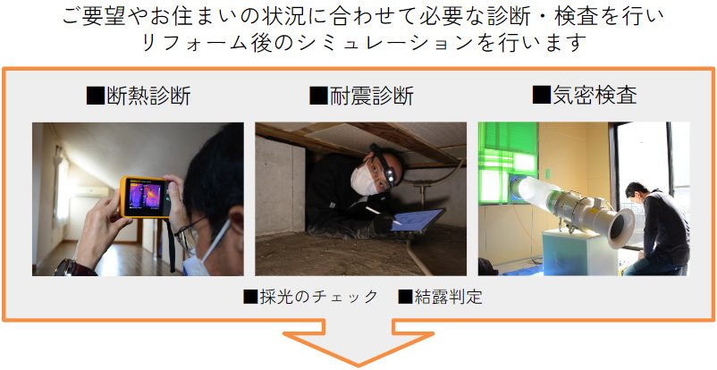 スタッフがお住まいの床下や屋根裏を拝見し、現状の耐震・断熱レベルを数値化、どこまで性能が上げられるか、上げる必要があるのかを診断します。